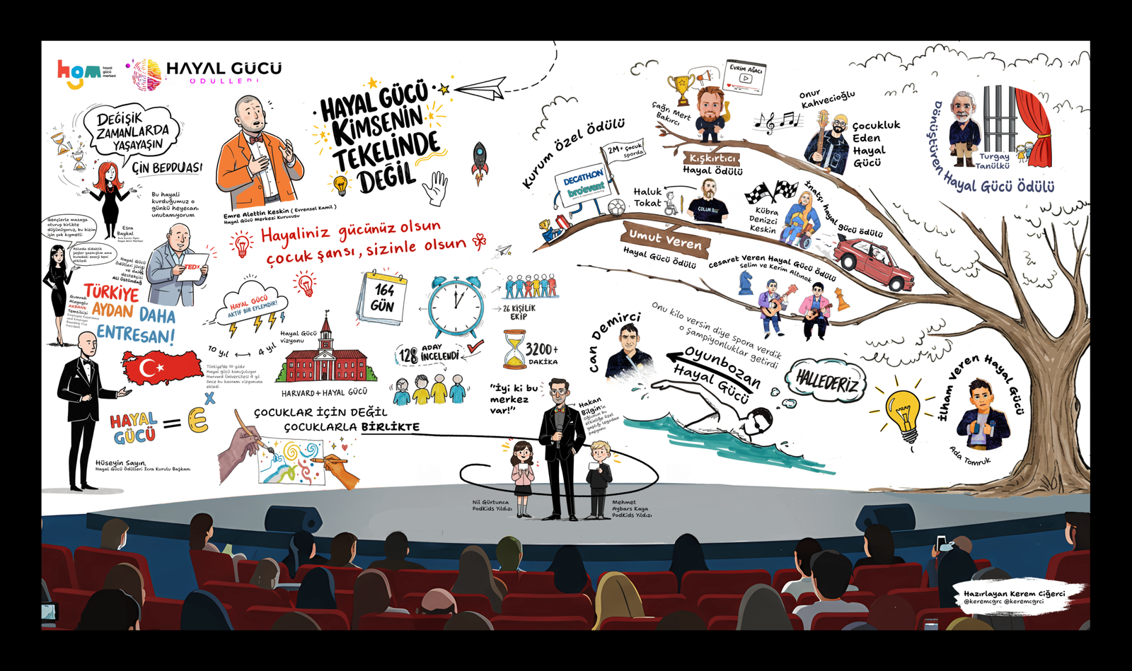 Hayal gücünün bu topraklarda uygarlıklar doğurmasına karşın, bugüne kadar hiçbir dernek veya kurum bu alandaki çalışmaları, kişileri ödüllendirmedi. Hayal Gücü Derneği olarak merak ve beceri ile üretilmiş, hayal gücünden ilham alan, bunu bir başarı öyküsüne dönüştüren kişi, kurum ve eserlerin görünürlüğünü artırmak ve desteklenmesini sağlamak için, 3 yıldır HAYAL GÜCÜ ÖDÜLLERİ‘ni düzenliyor ve hayalini gücüne çevirenleri ödüllendiriyoruz.02 Mayıs 2026 yılında 4.sünü düzenleyeceğimiz bu muhteşem gece için daha fazla bilgi için web sitemizi ziyaret edebilirsin.